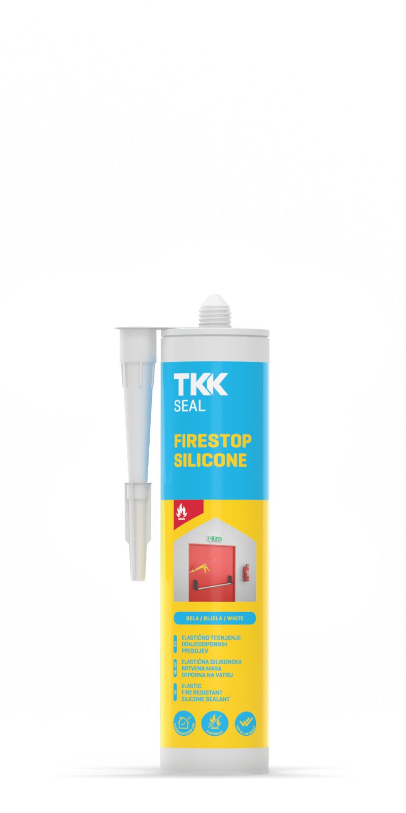 Jednosložkový neutrální silikonový tmel. Vytvrzuje vulkanizací vzdušné vlhkosti, vytváří trvale pevný elastický spoj se schopností zabránění prostupu kouře a ohně. Vlastnosti